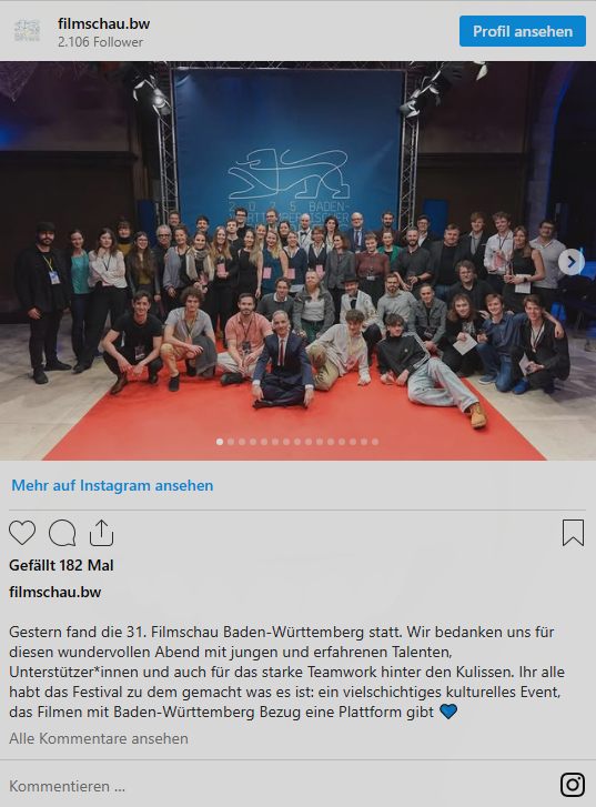 Wenige Wochen vor Weihnachten hat die Filmschau Baden-Württemberg stattgefunden. Im Rahmen des Filmfestivals findet auch der Jugendfilmpreis statt. Die Juryarbeit dazu, in einem tollen Team, inkl. Feedbackrunden und Preisverleihung haben echt viel Spaß gemacht.